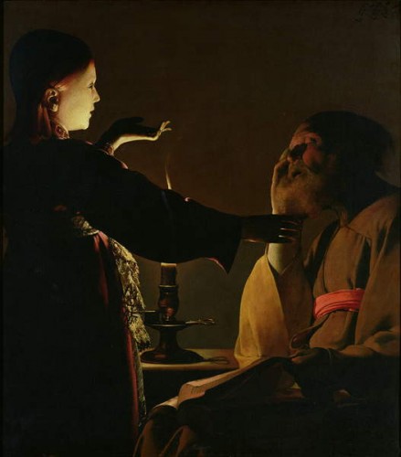Prendiamo dunque in prestito le immagini di Georges de La Tour, pittore lorenese, di ispirazione caravaggista, che nel 1638 visse con la sua famiglia nelle gallerie del Louvre come “Pittore ordinario del Re”. Tralasciando le vicende della sua vita, che vi racconteremo magari in altra occasione, ci siamo concentrate sulla sua rappresentazione della luce.
